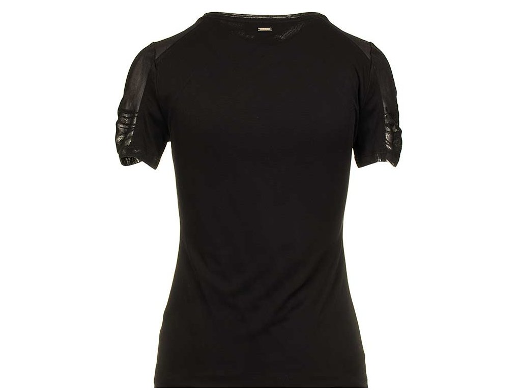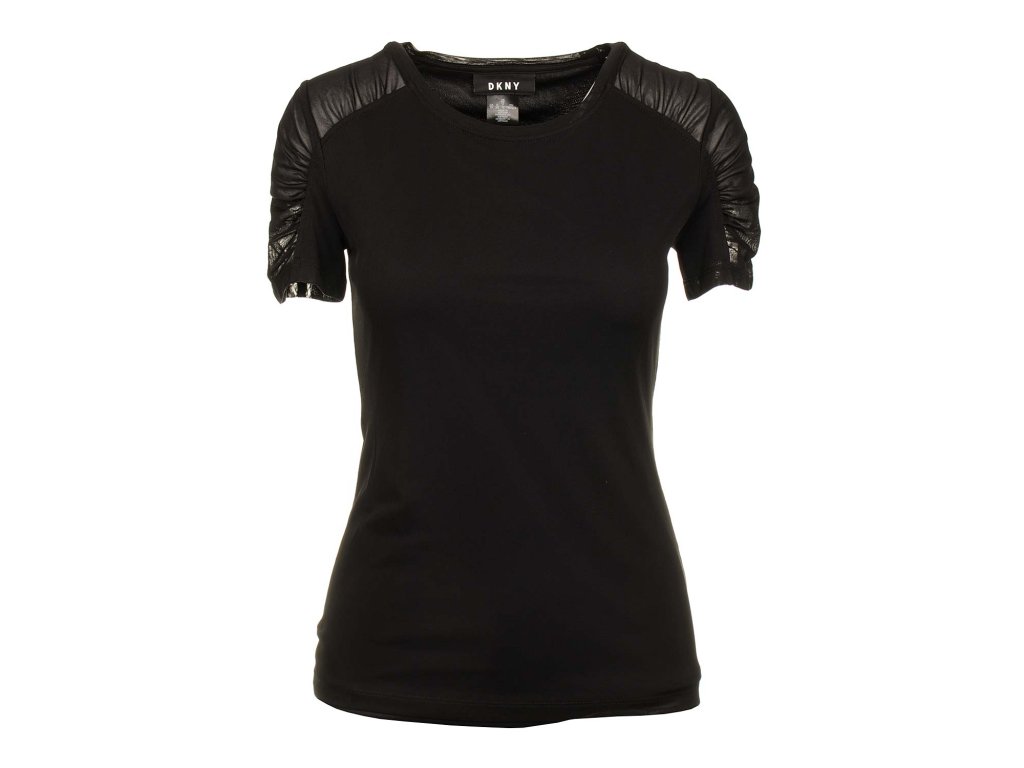 Dámské tričko značky DKNY. Zajímavě řešené tričko, které je tvořené z dvou částí, svrchní část je průsvitná, spodní část je elastická a přizpůsobí se postavě. Takovéhle zpracovaní je velmi atraktivní.