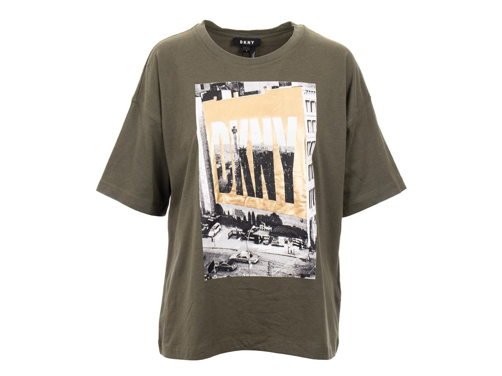 Dámské tričko značky DKNY v zelené barvě s potiskem New Yorku.