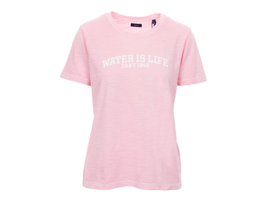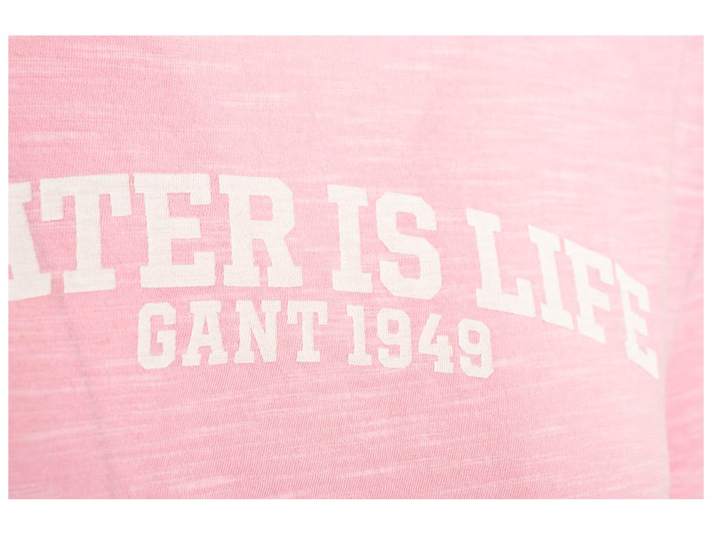 Dámské bavlněné tričko Gant v růžové žíhané barvě s bílým potiskem na prsou.