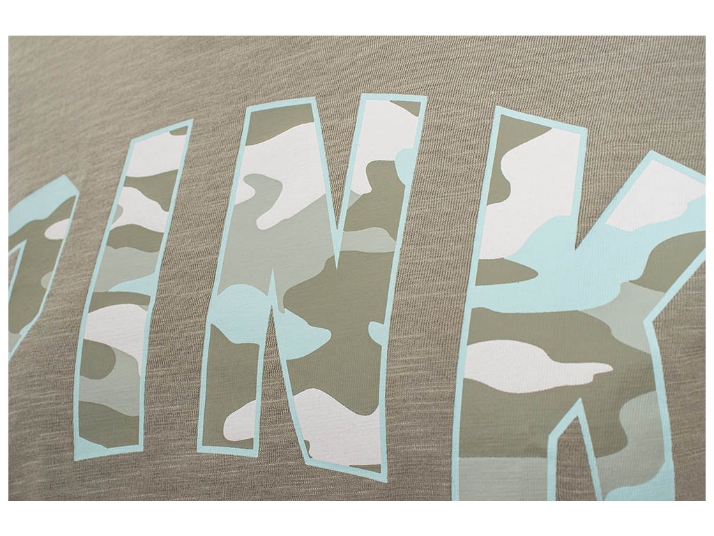 Dámské tričko Victoria's Secret v khaki zelené barvě . Na prsou zdobené potiskem. Příjemný bavlněný materiál.