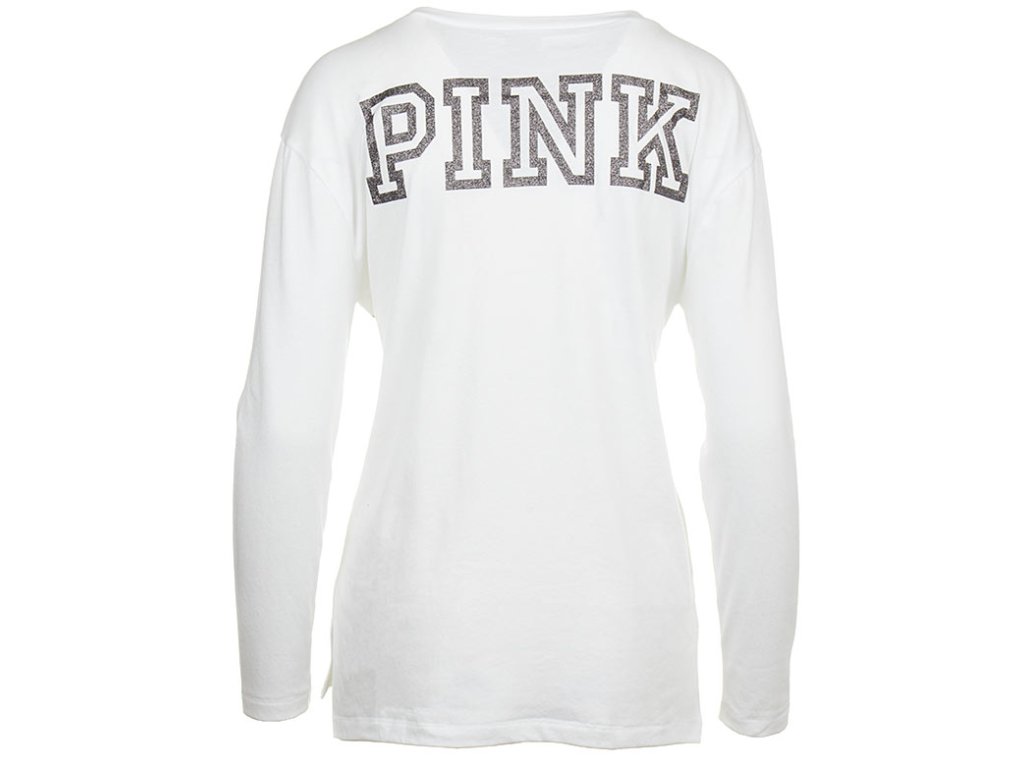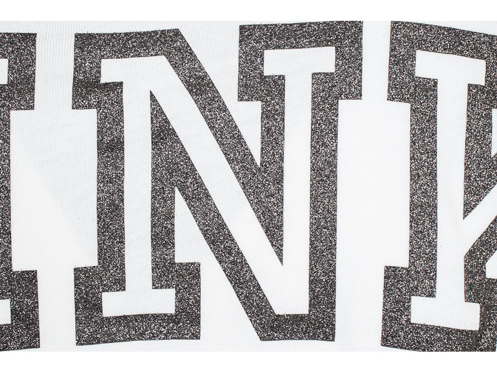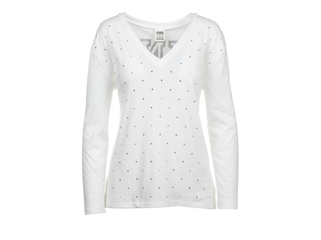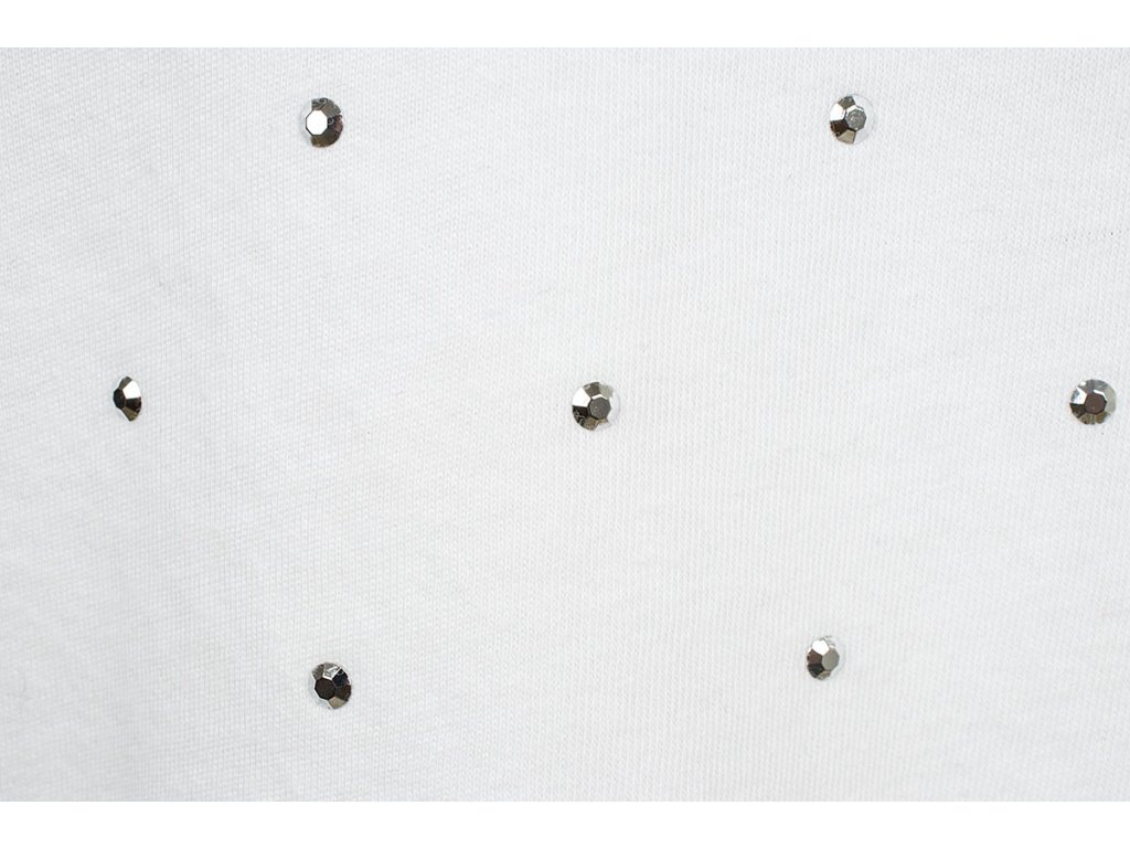 Dámské tričko s dlouhým rukávem v bílé barvě, výstřih do V. Lehce elastické. Tričko na přední straně zdobené stříbrnýma kamínkama, vzadu potisk se třpytkami.