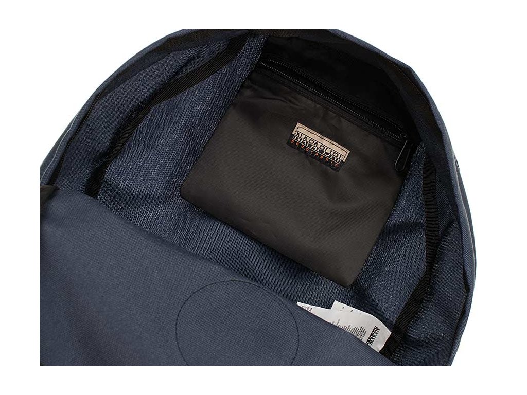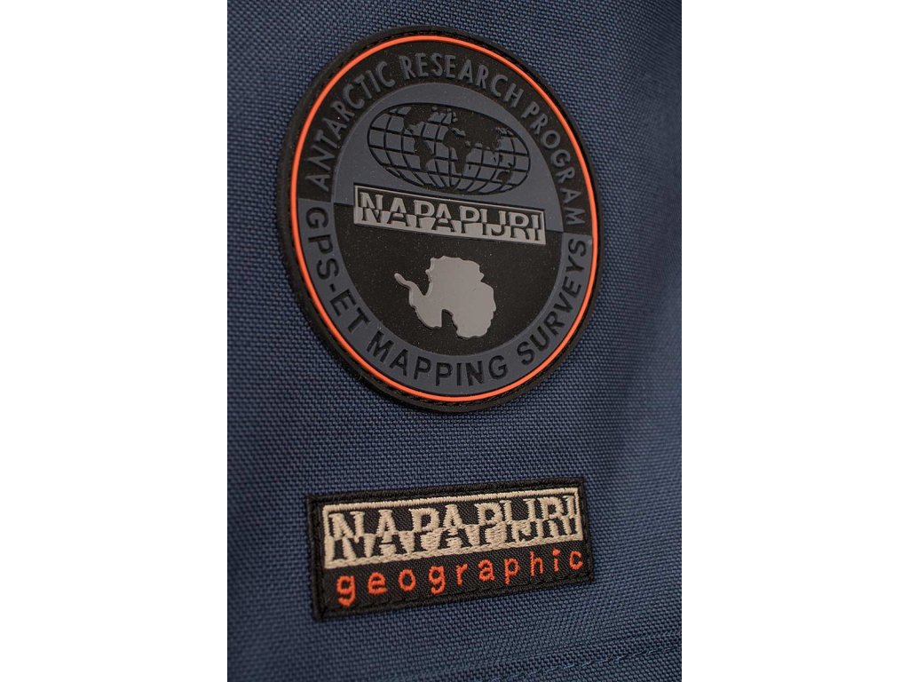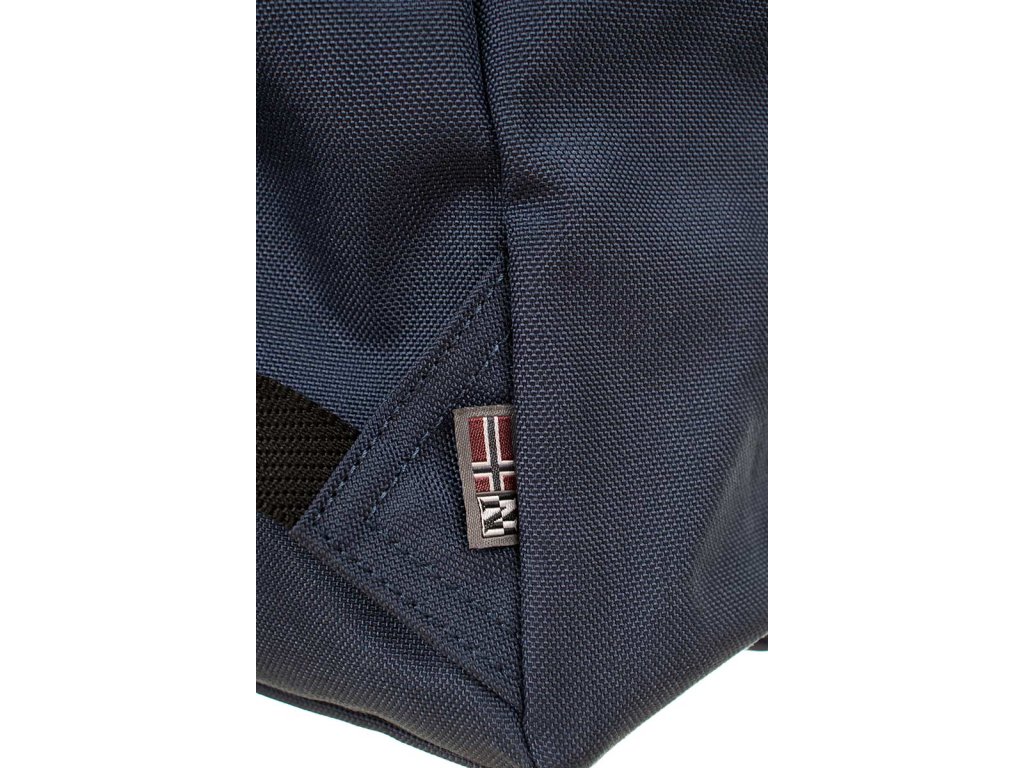 Batoh modré barvy od značky Napapijri. Pěkně vypadající batoh s nášivkou a gumovou aplikací v přední části, navíc vpředu menší kapsa na zip. Hlavní velká kapsa na zip s menší kapsou uvnitř. Popruhy přes rameno jsou nastavitelné. Decentně zdobený batoh, přesto zaujme na pohled. V jednoduchosti je krása.