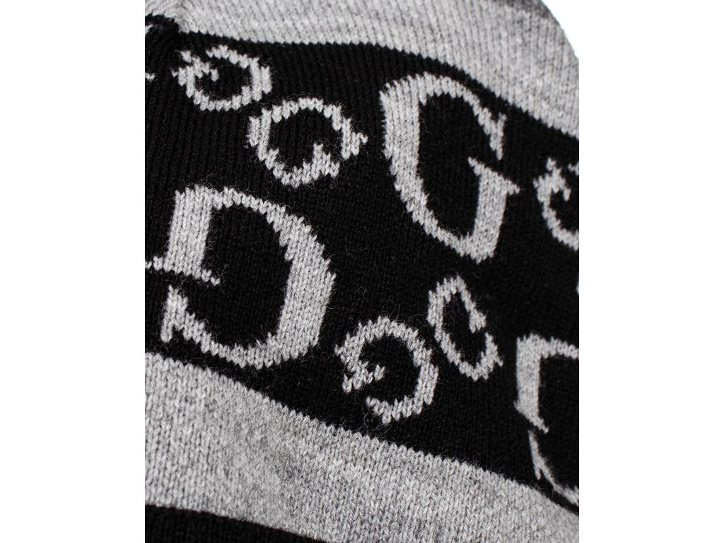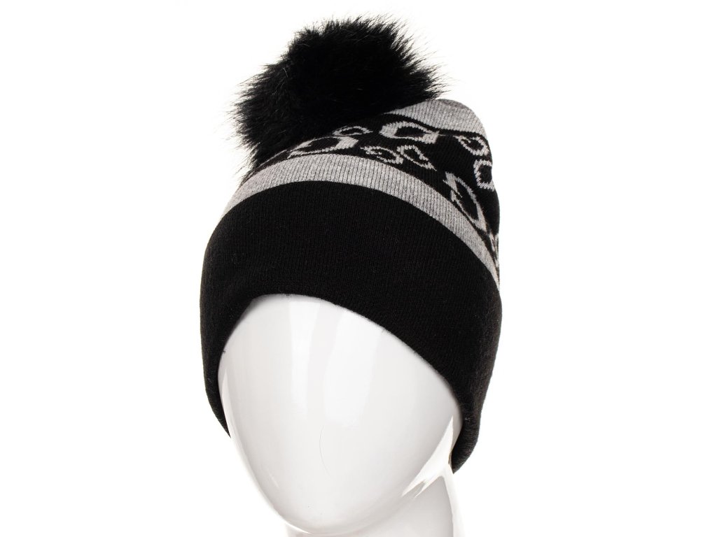 Dámská čepice Guess v černo šedé barvě s monogramem a černou bambulí. Příjemný teplý pružný materiál.