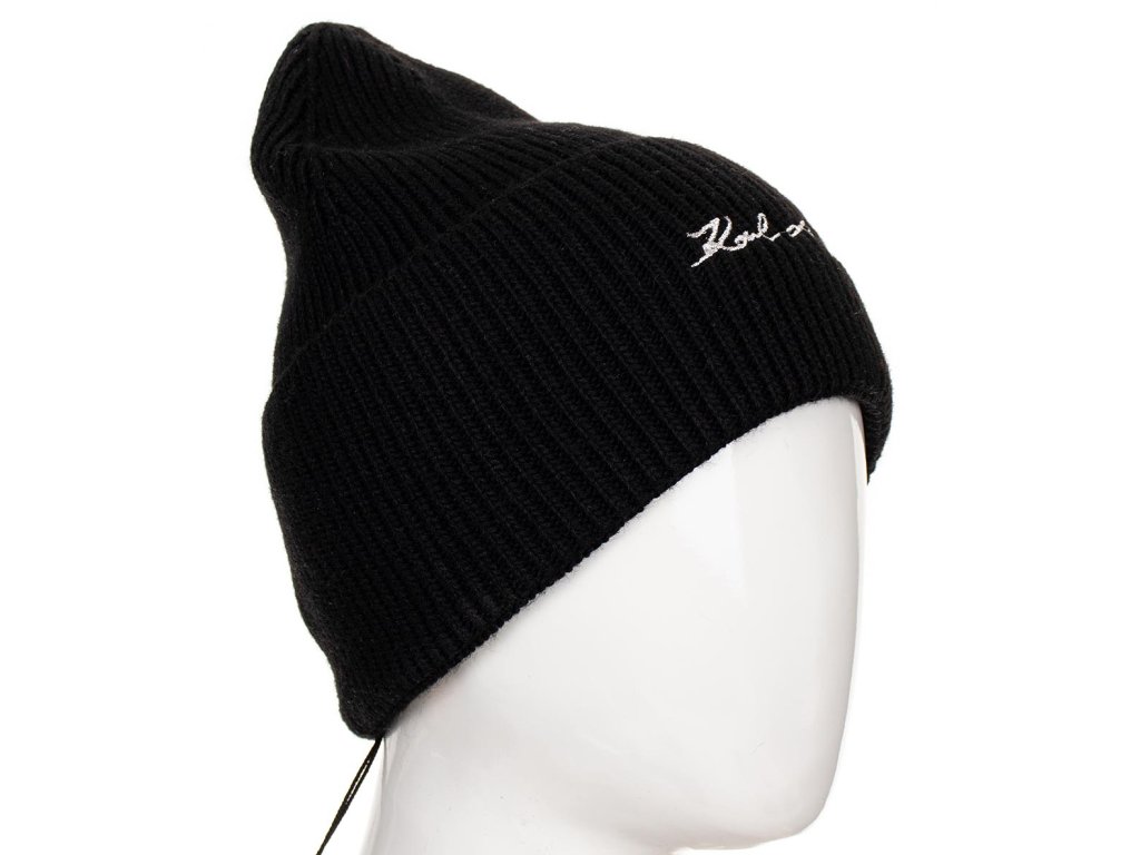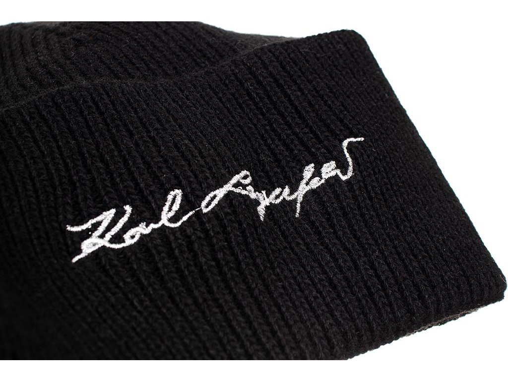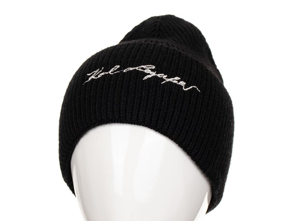 Dámská čepice Karl Lagerfeld z příjemného žebrovaného materiálu v černé barvě se stříbrně vyšitým logem.