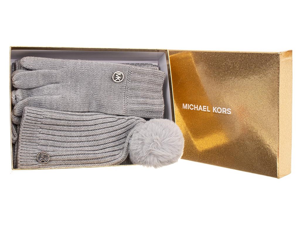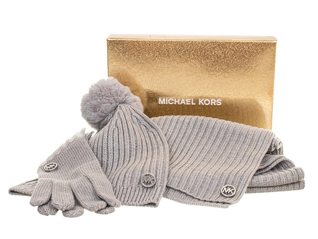 Dámský troj set čepice, šála a rukavice Michael Kors v šedé barvě
