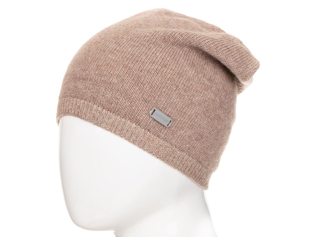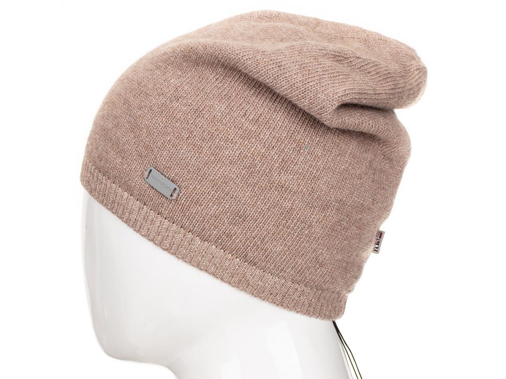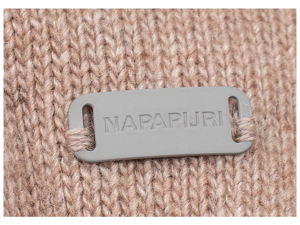 Dámská čepice Napapijri v béžové barvě zdobena kovovou placičkou s vyrytým logem. Ve švu vyšita vlajka.