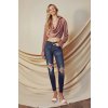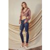 Džíny oblíbené značky KanCan v potrhaném vzhledu v tmavší šisované modré barvě prošívané světlou nití.