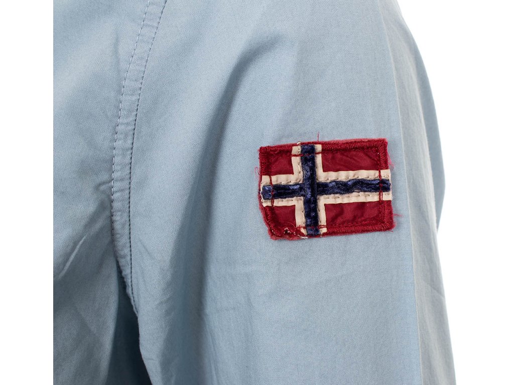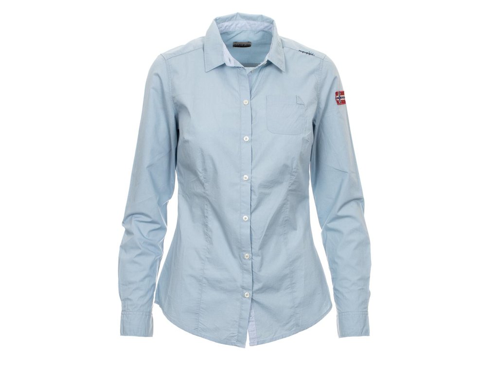 Dámská bavlněná košile Napapijri ve světle modré barvě. Zdobena aplikací vlajky na rukávu a výšivkou loga na rameni.