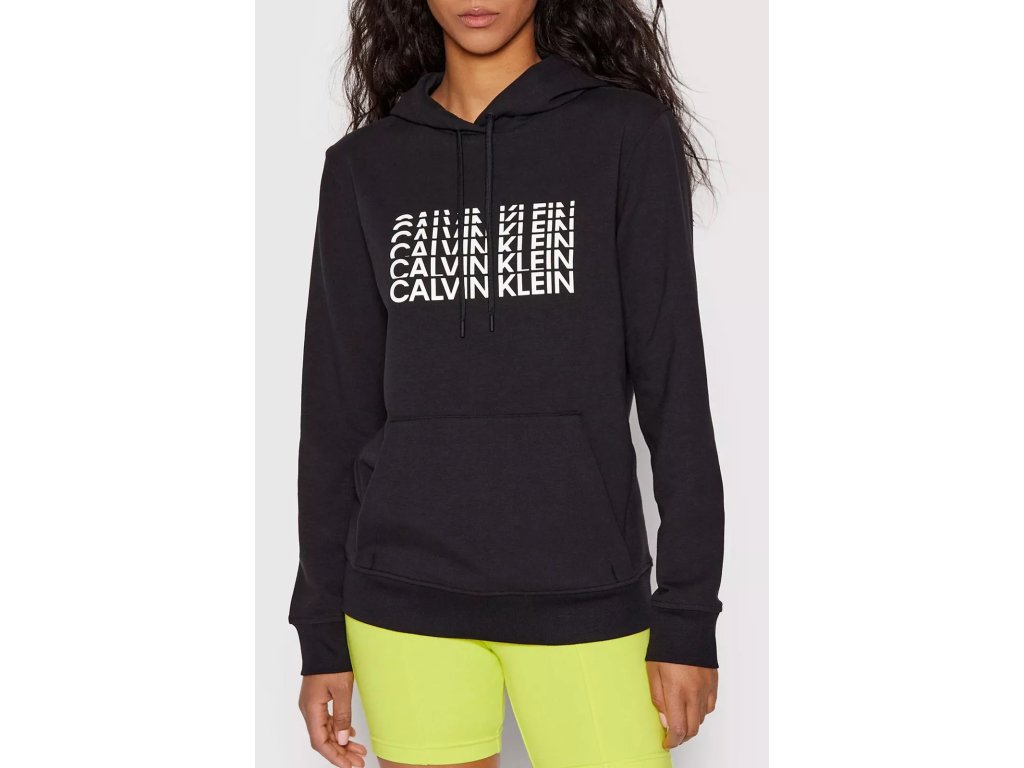 Dámská mikina Calvin Klein v černé barvě s bílými nápisy. Oblíbený střih klokanka s kapucí. Mikina je z velmi příjemného tenkého materiálu s reflexním prvkem ve tvaru loga na zadním díle.
