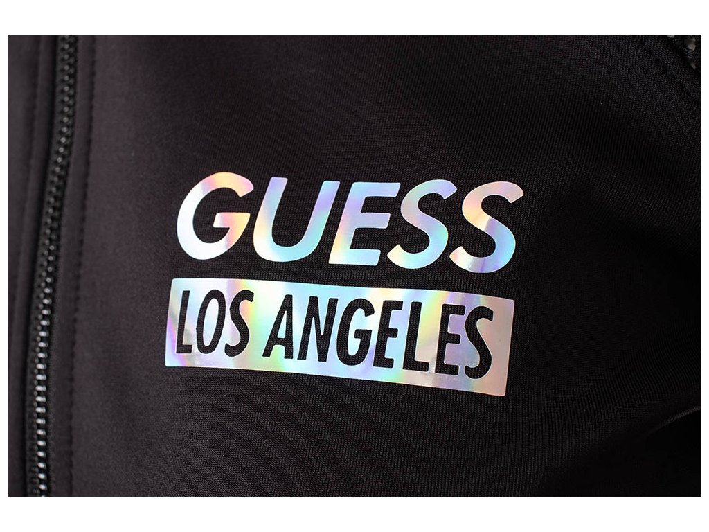 Dámská černá Guess mikina na zip se síťovanými rukávy a holografickým nápisem