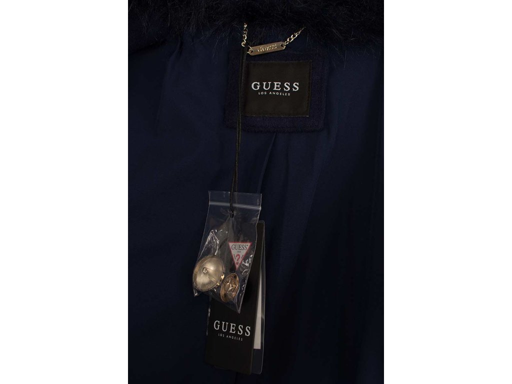 Dámský kabát značky Guess. Hezky vypadající kabát s kožíškem a nádherně zdobenými knoflíky. Zapínání pomocí knoflíků, po stranách okrasné klopy. S tímto kabátem oslníte nejednoho kolem jdoucího.