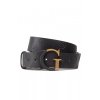 Černý dámský pásek Guess se zlatou sponou a vytlačeným monogramem.