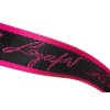 Dámský pásek od značky Karl Lagerfeld černo růžový s nápisy značky a stříbrnou přezkou.