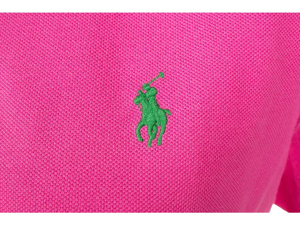 Dámské polo tričko značky Ralph Lauren. Pohodlné růžové polo tričko se zapínáním na knoflíky. V levé horní části se nacházi logo zelené barvy. Na bocích rozpárky.