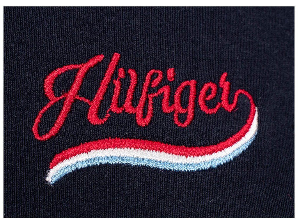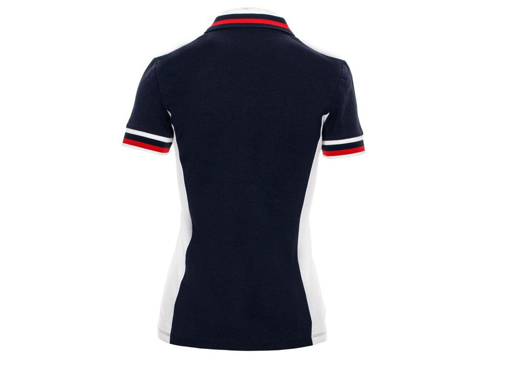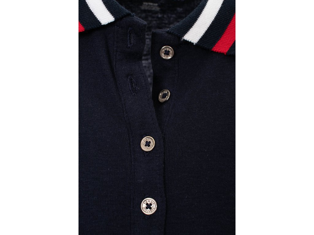 Dámské bavlněné polo tričko Tommy Hilfiger v tmavě modré barvě v kombinaci s bílou a červenou. Na prsou zdobené vyšitým logem. Stříbrné knoflíky zdobí vyrytí loga.