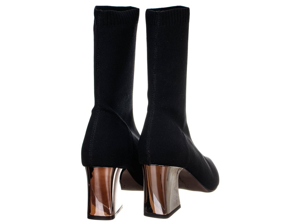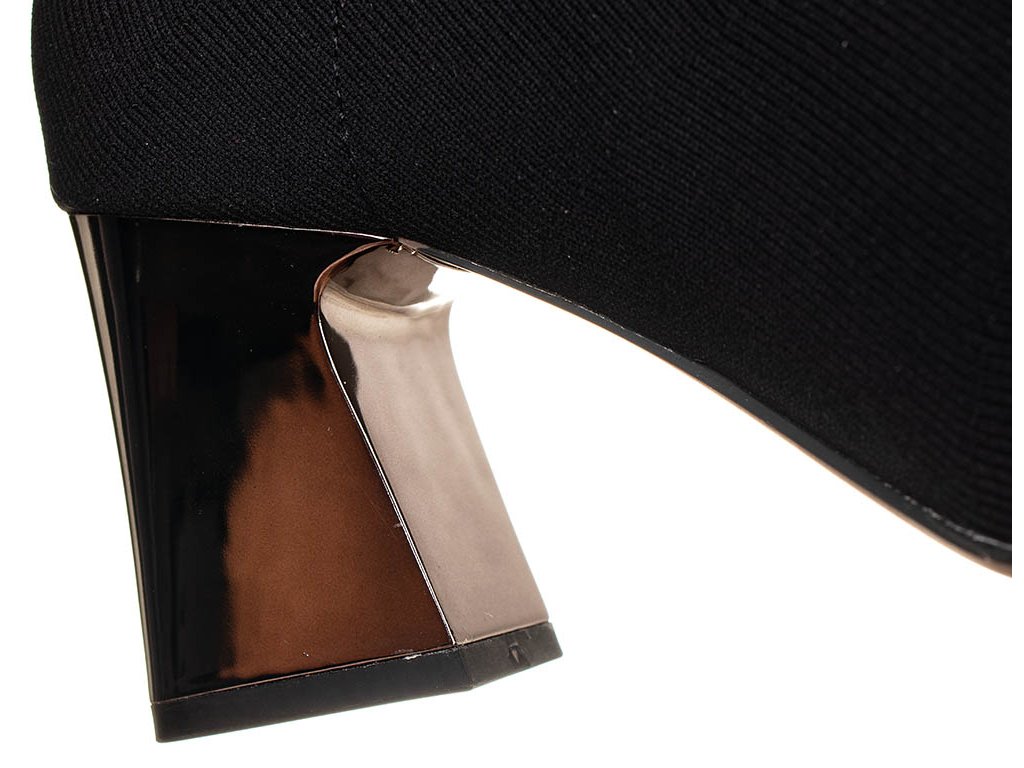 Módní dámské natahovací polo kozačky ze strečového materiálu a s textilní stélkou. Vyměkčená stélka se přizpůsobuje vašemu chodidlu a zajišťuje při chůzi optimální komfort. Protiskluzný podpatek stříbrné barvy AntiSlide je vysoký 7 cm.