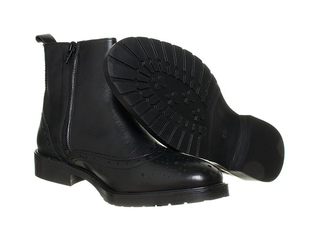 Černé kožené polokozačky Zign pro dámy. Svrchní materiál kůže, uvnitř kůže a textilní materiál. Na vnitřní straně zip pro snadnější obouvání, brogue děrování.