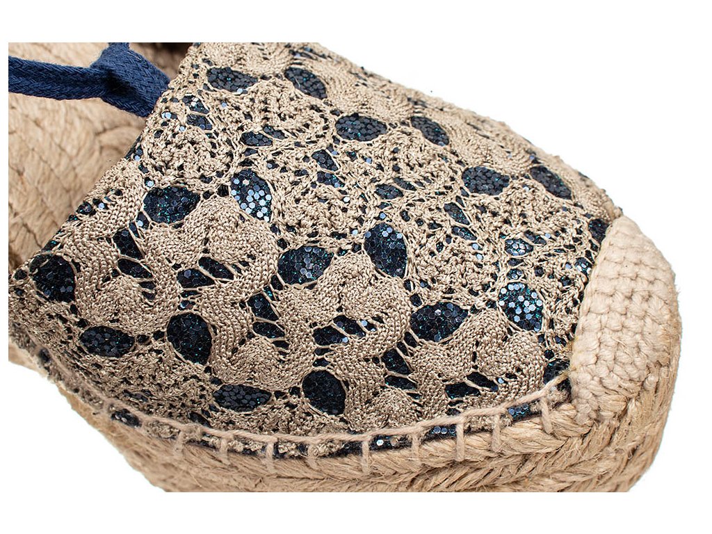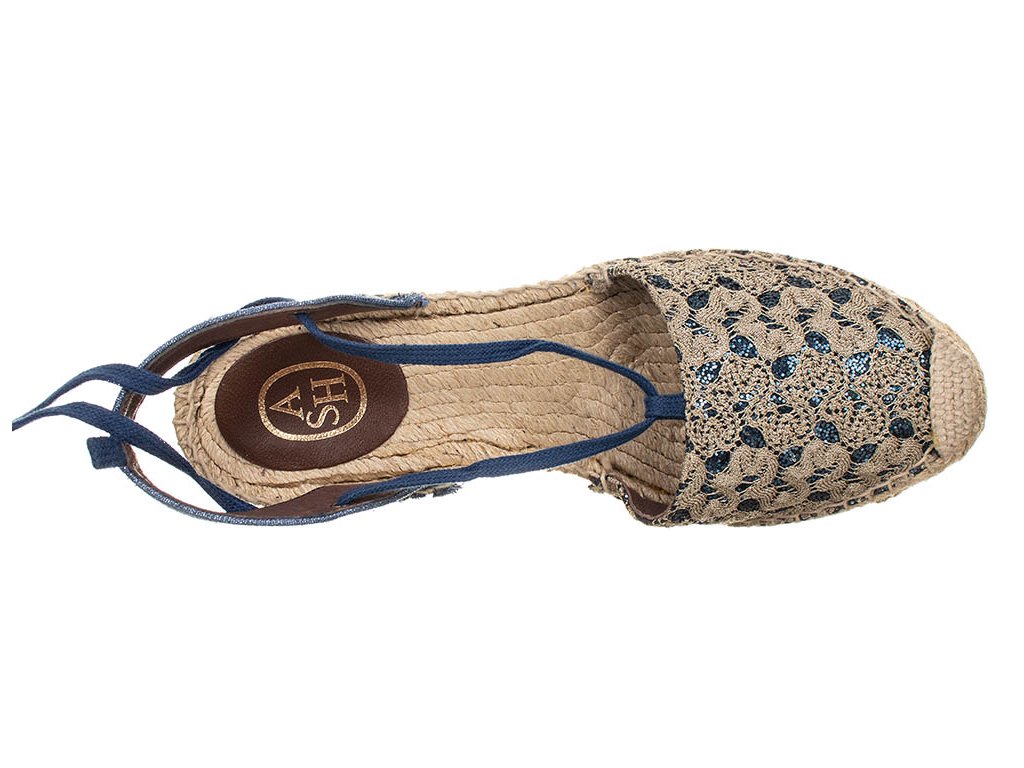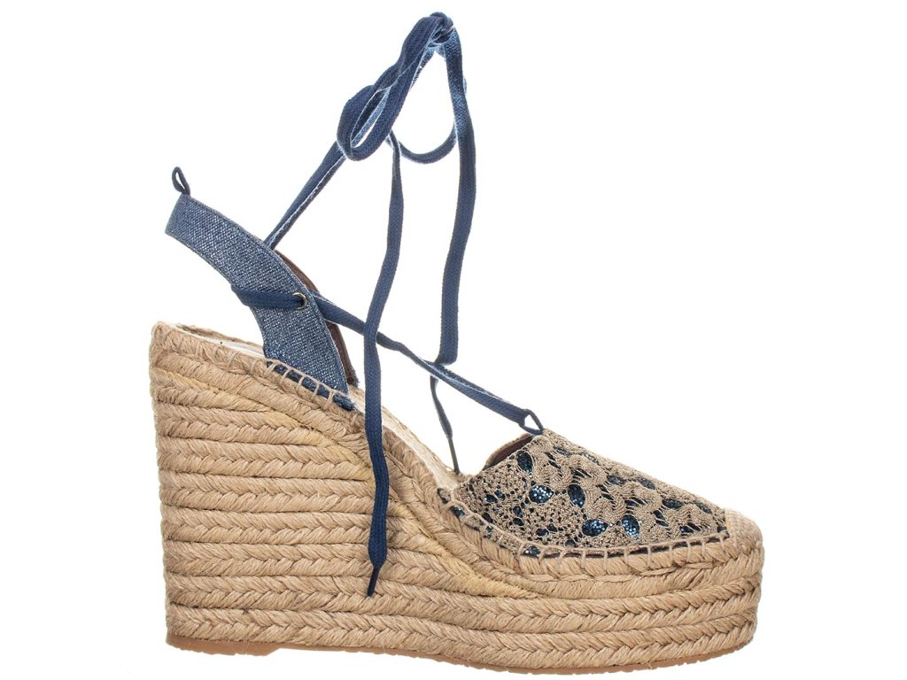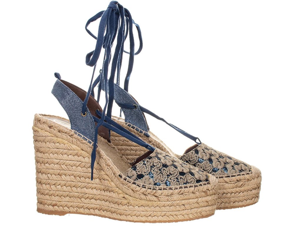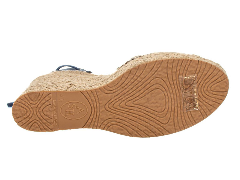Dámské sandály na klínku ASH . Značka ASH v sobě spojuje francouzský design s italským řemeslem a kvalitou kůže. Propracování, barevná kombinace béžové a třpytivé modré spolu se šněrování kolem nožky zaujme na první pohled.