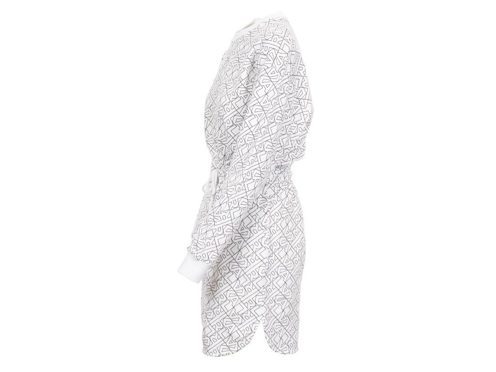 Dámské mikinové šaty Karl Lagerfeld v krémové barvě poseté černým logem . V pase pružná guma a tkanička. Šaty mají 2 funkční kapsy, příjemný měkoučký bavlněný materiál.