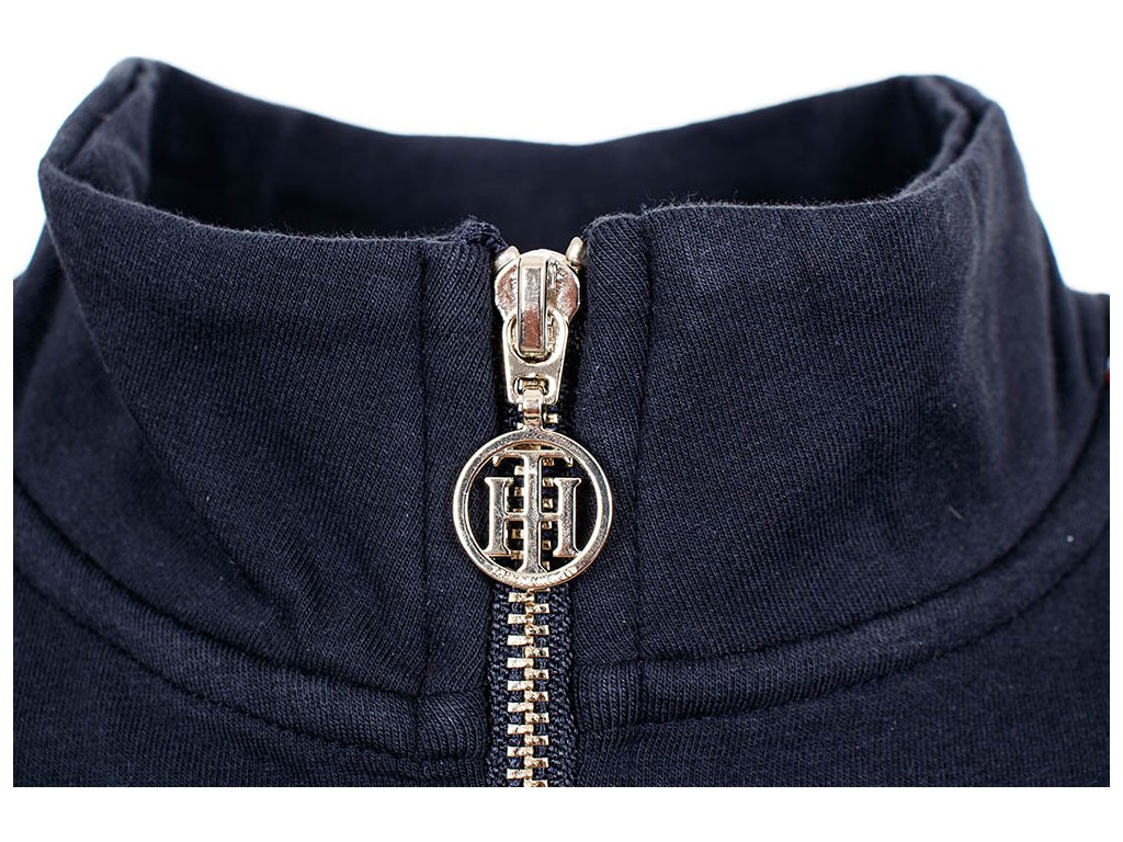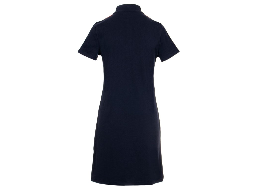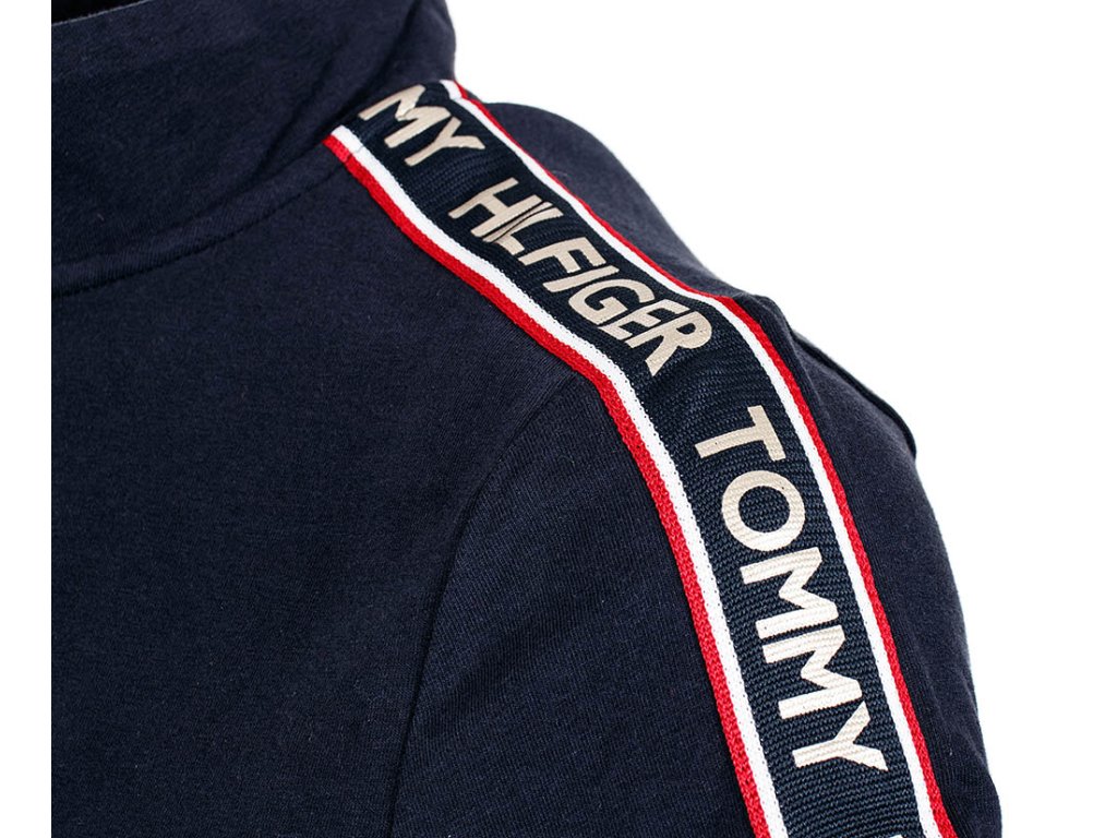 Zajímavě řešené sportovní šaty Tommy Hilfiger v tmavě modré barvě. Ramena a rukávy jsou zdobeny pruhem se stříbrným nápisem Tommy Hilfiger. Jezdec zipu je zakončen kovovým logem TH, na prsou nechybí vyšitá vlaječka. Z velmi příjemného pružného materiálu.