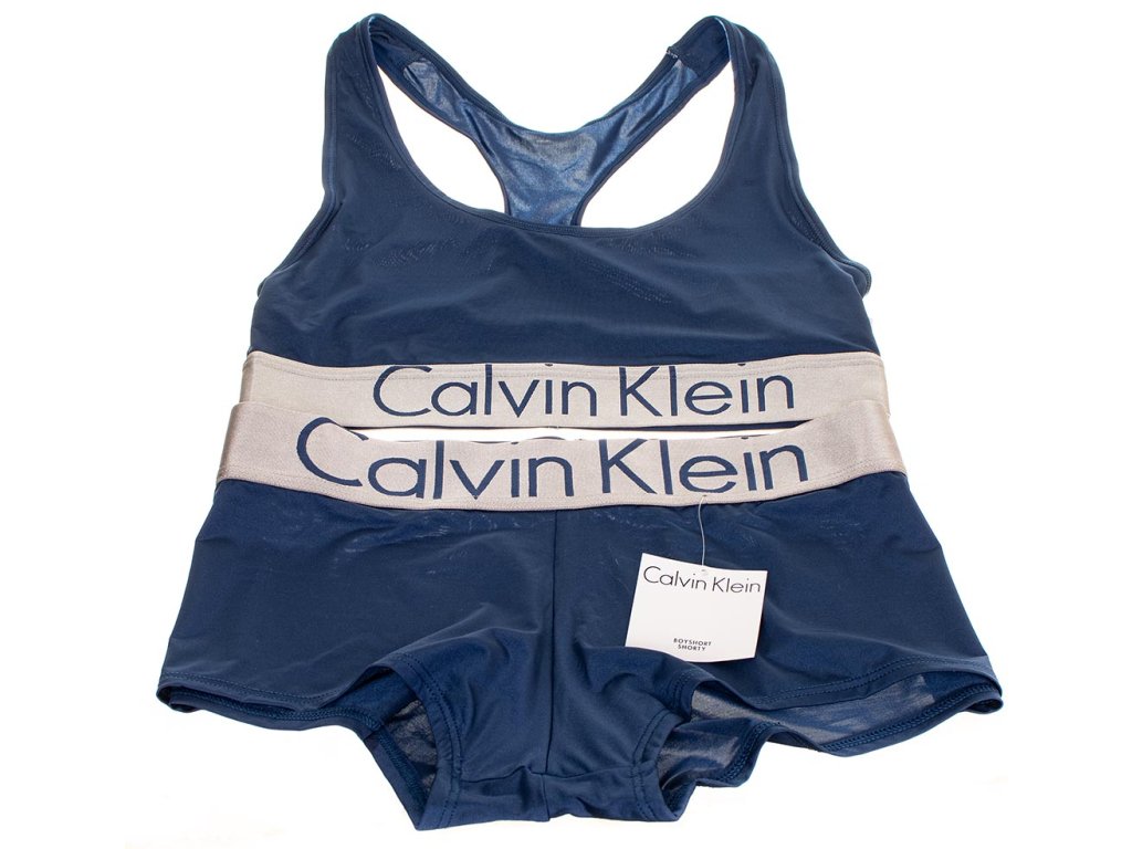 Dámská podprsenka značky Calvin Klein v modré barvě se stříbrným lemem.
