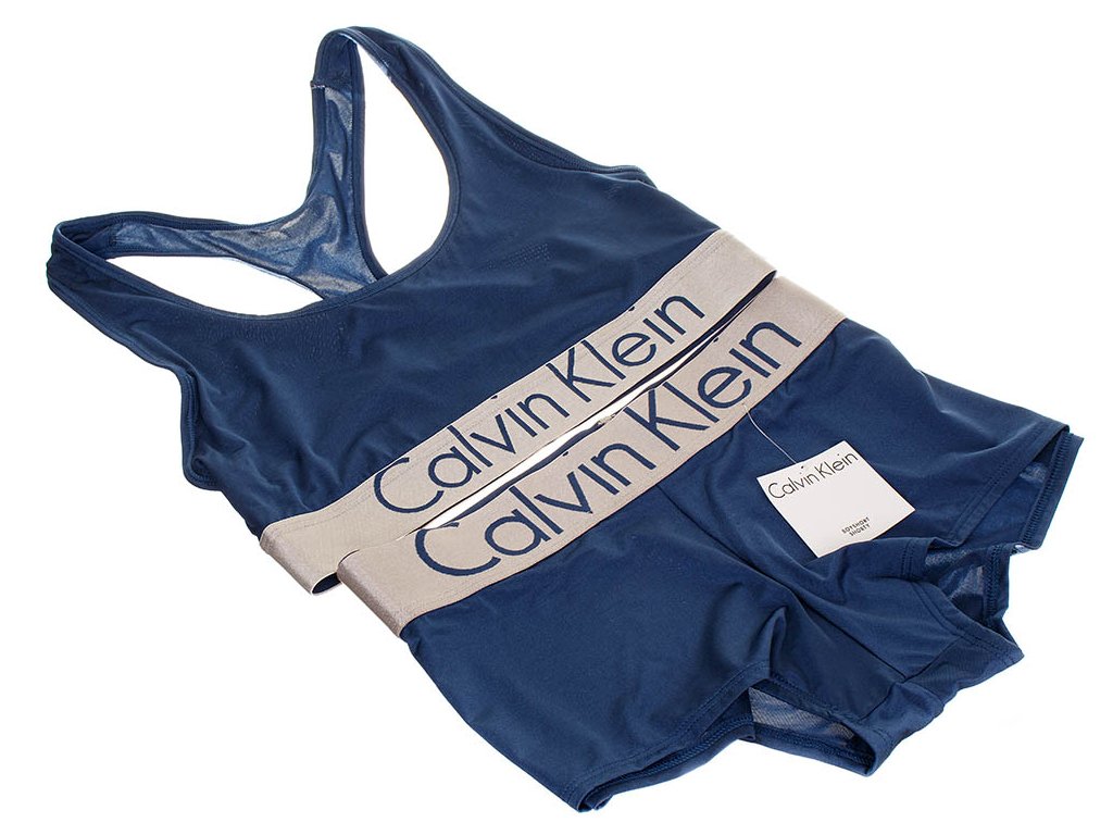 Dámské kalhotky značky Calvin Klein v modré barvě se stříbrným lemem.