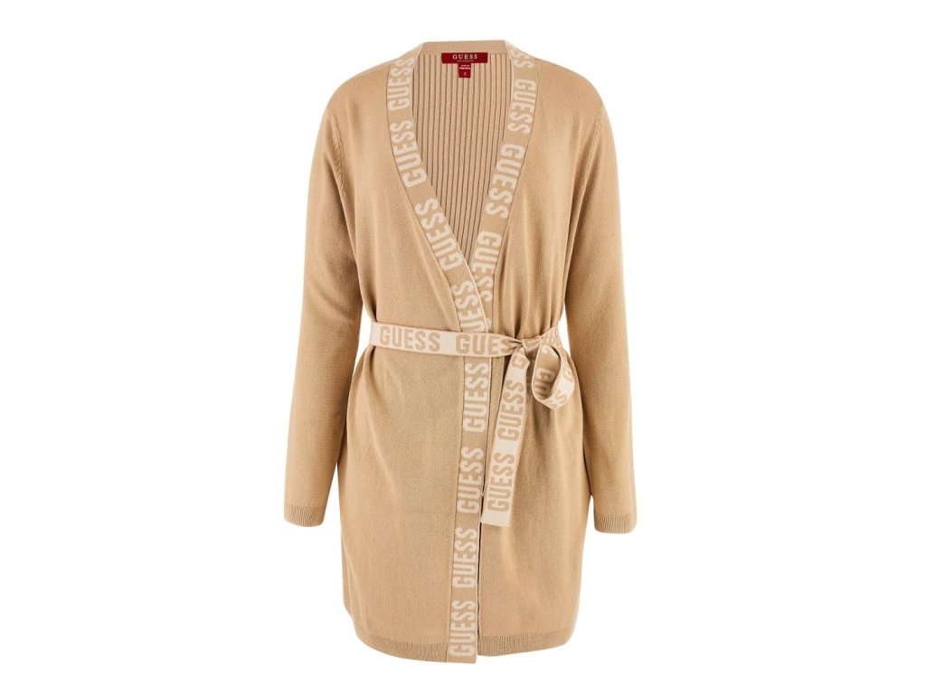Dámský kardigan Guess ve dvou odstínech béžové barvy. Přední díly a pásek zdobeny logy. Příjemný pružný materiál.