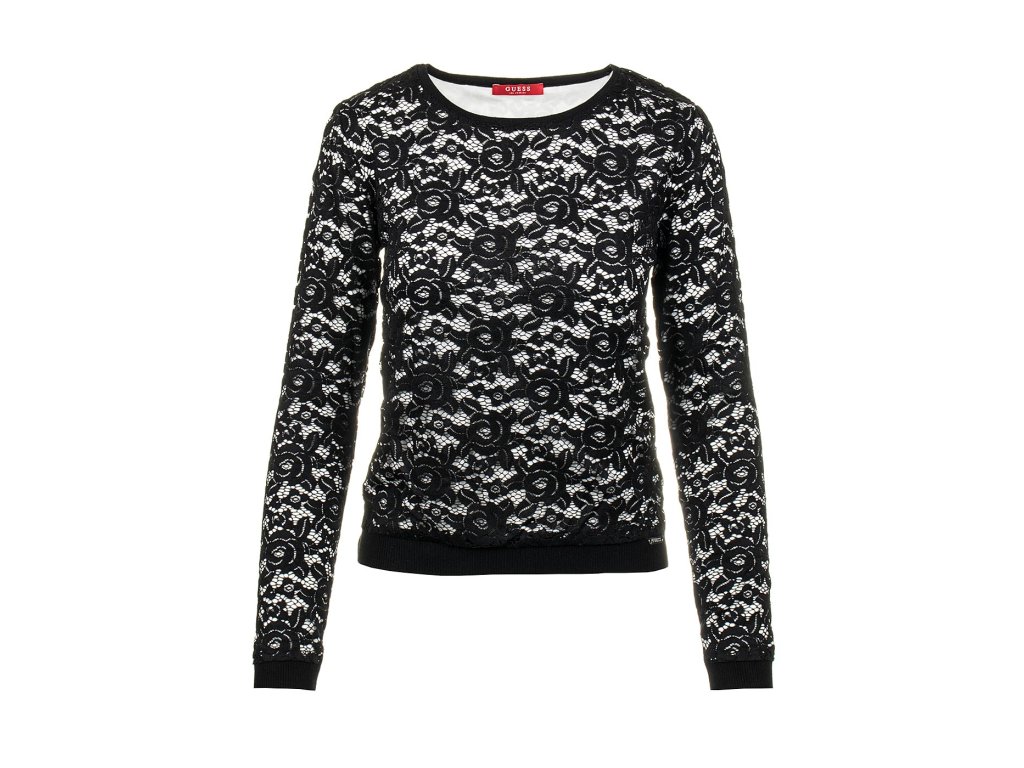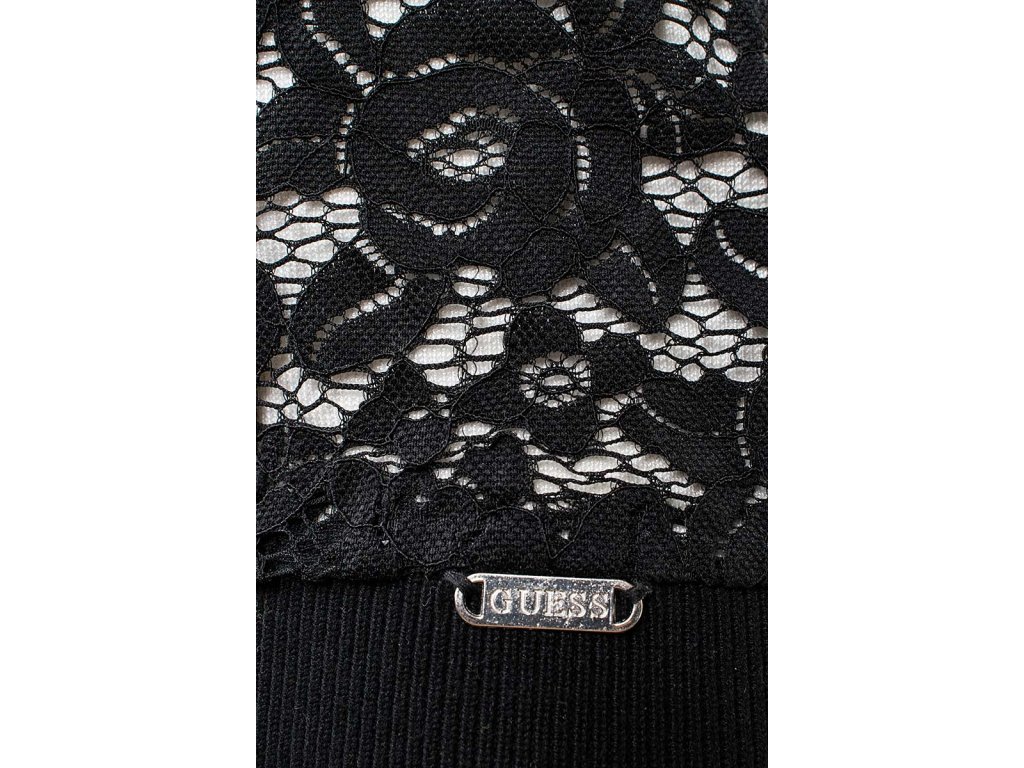 Dámský svetřík od značky Guess. Krásný kousek který je tvořen z dvou částí. Spodní část je smetanově bílá a svrchní část je krajkovaná a v černé barvě. Tato kombinace dělá svetřík na pohled velmi zajímavý. Ve spodní části je decentní kovová placka značky Guess.