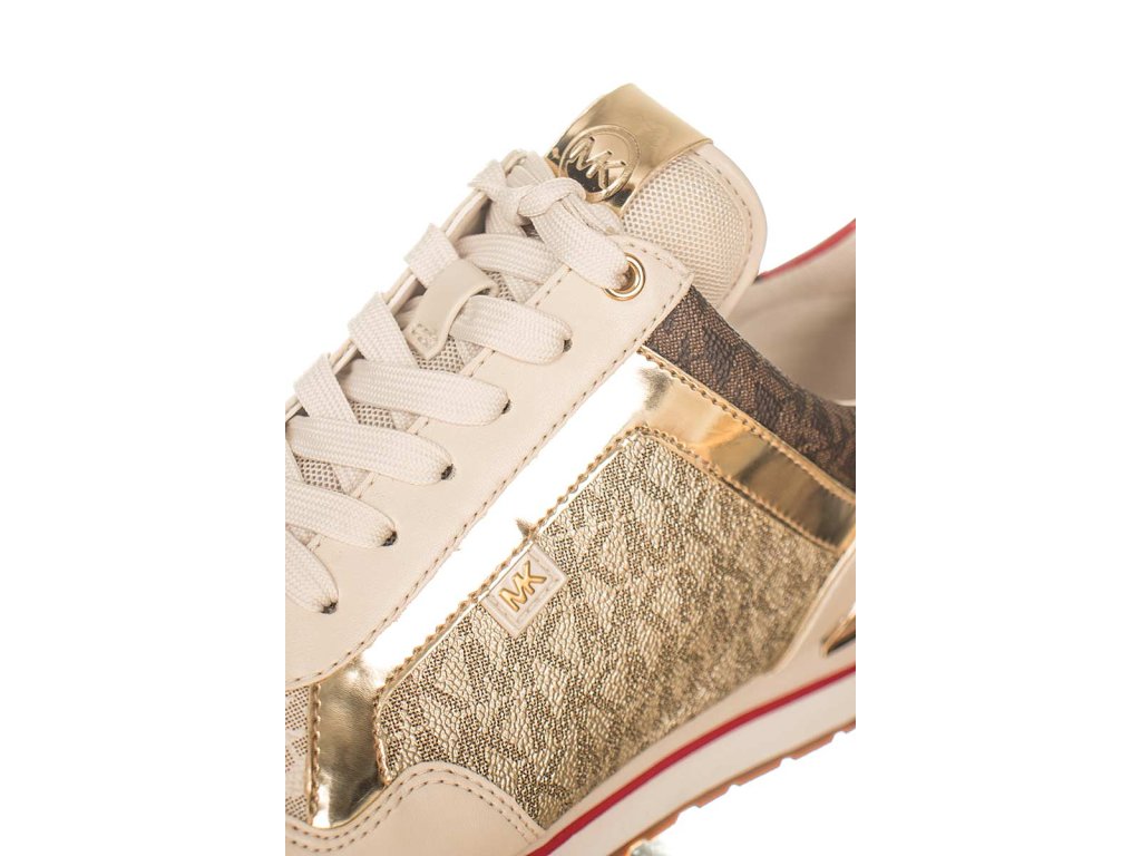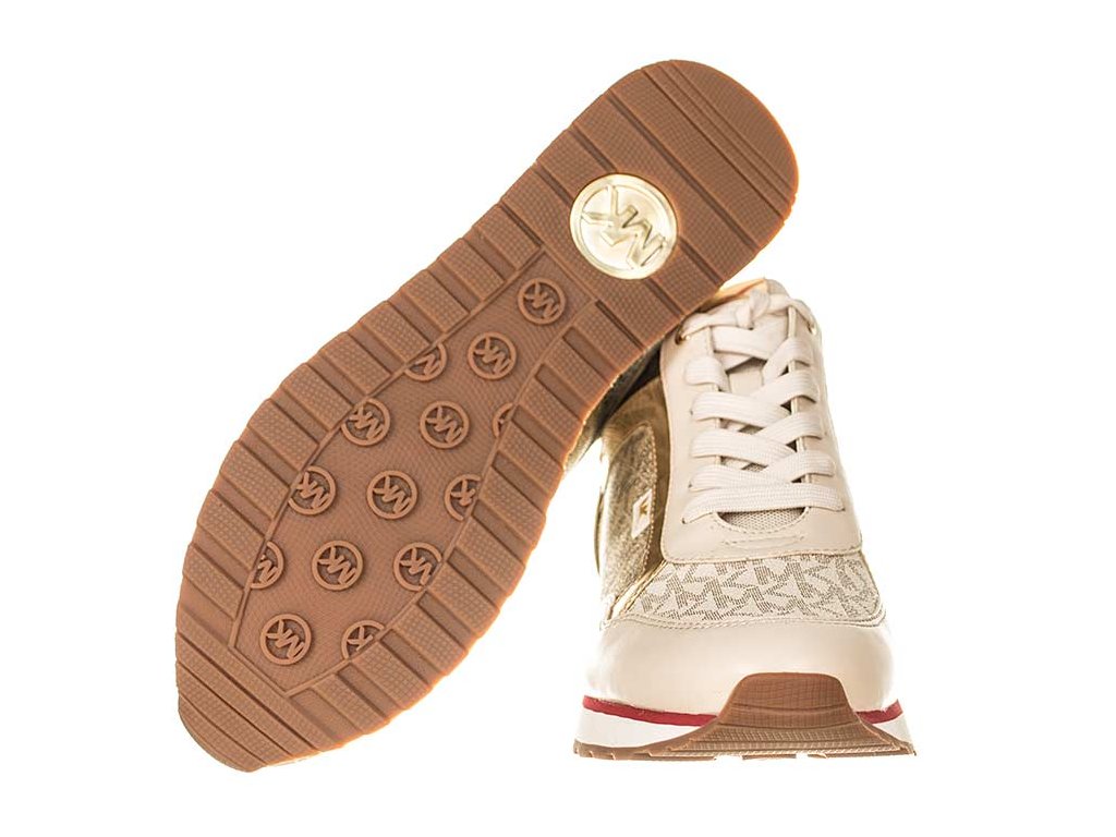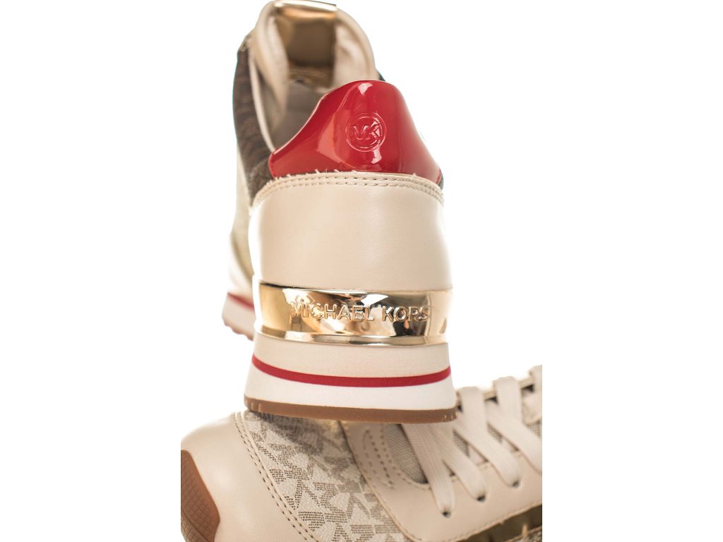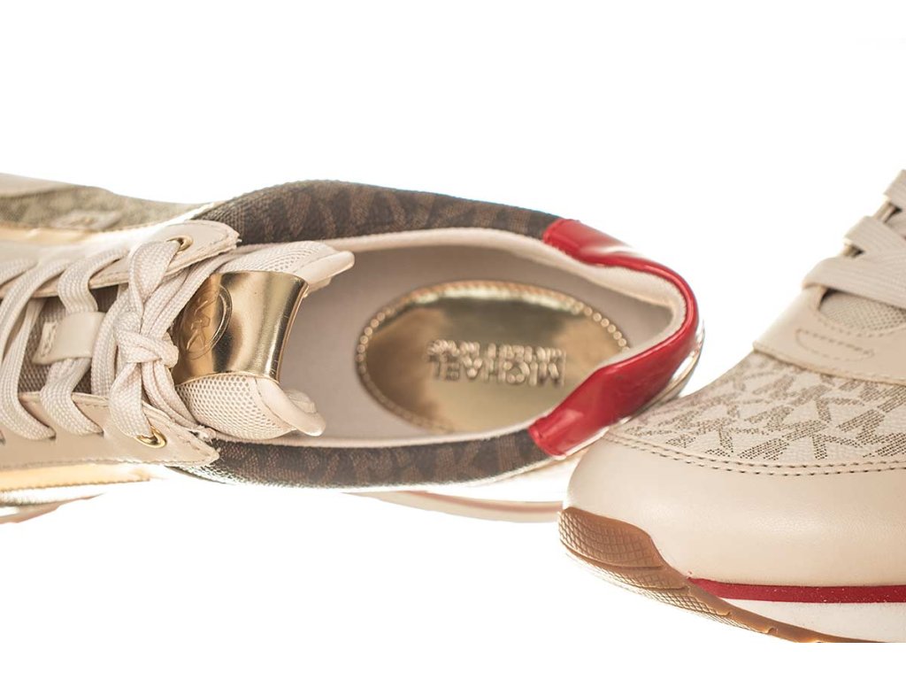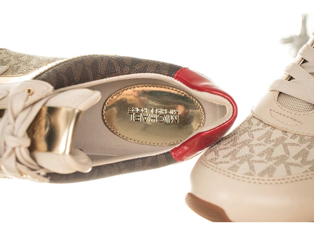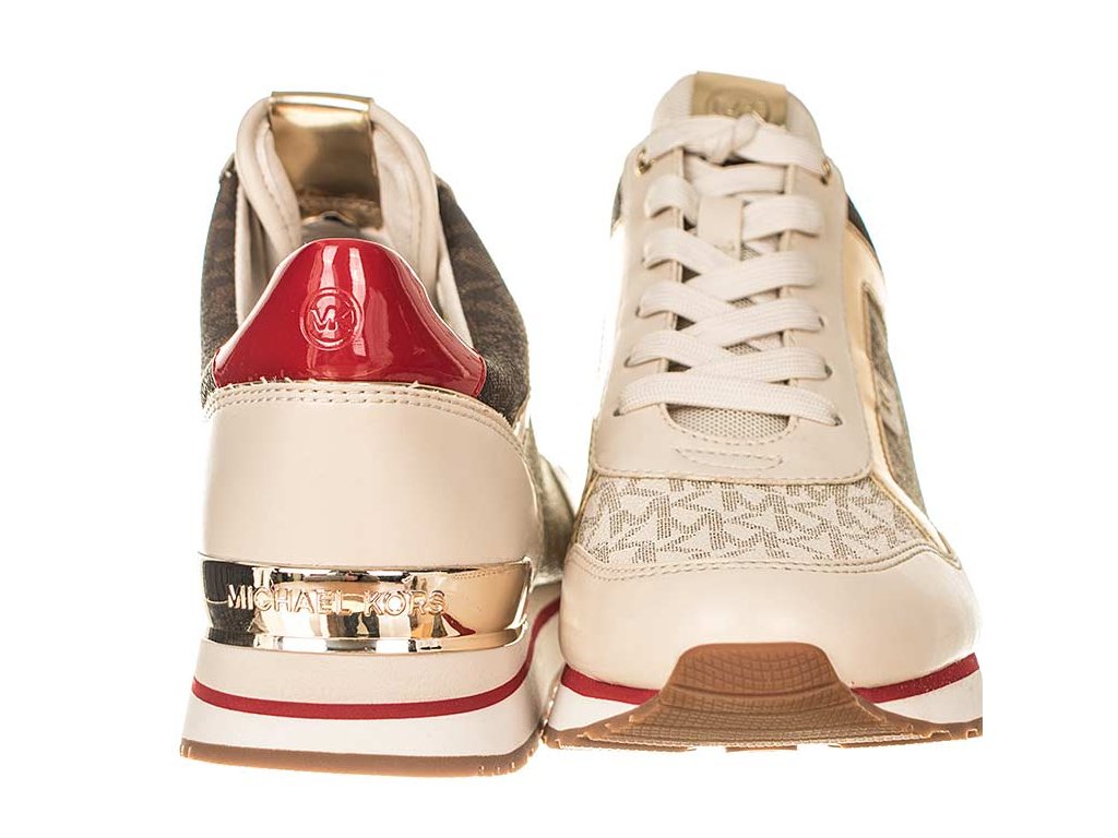 Nádherné tenisky značky Michael Kors. Tenisky jsou zdobené monogramem "MK" další detaily jsou řešené převážně ve zlaté barvě, doplněné o červenou a hnědou barvu. S takovými tenisky určitě vyniknete.