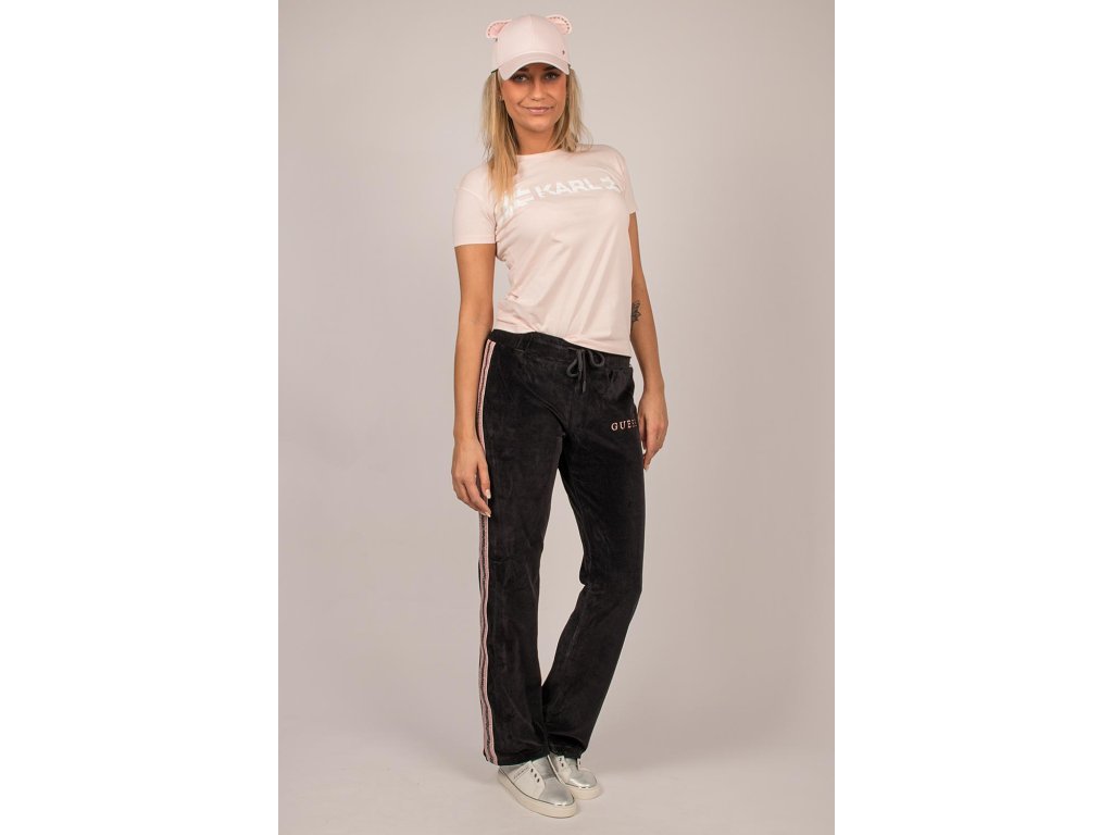 Sametové tepláky značky Guess. Chcete, aby se vaše nohy cítily jako v bavlnce? V tom případě neváhejte. Tepláky jsou heboučké na dotek, teplé a k tomu všemu s elegantním třpytivým pruhem na bocích.
