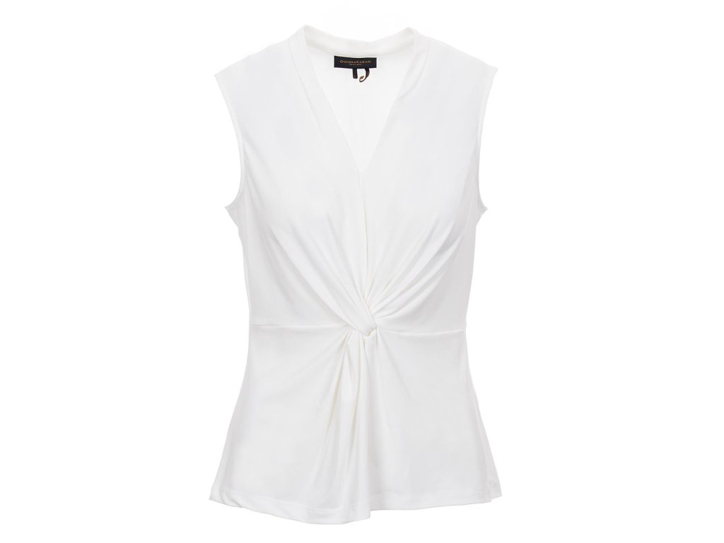Dámský top Donna Karan v krémově bílé barvě. Zajímavě střihově řešené, příjemný pružný materiál.