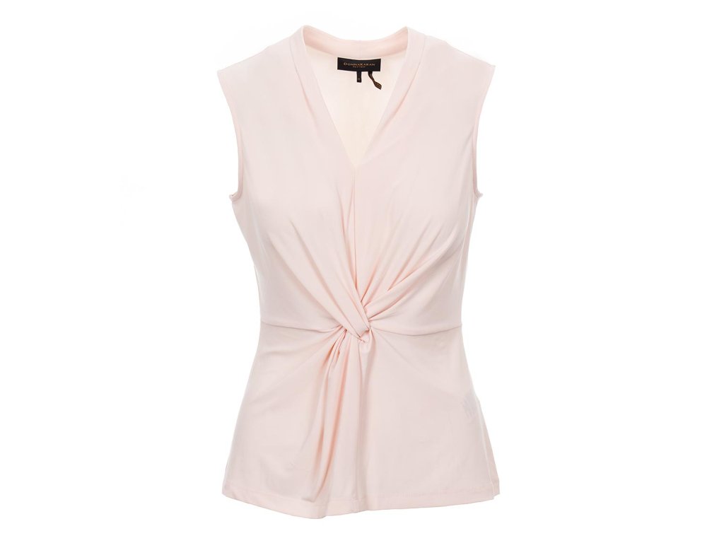 Dámský top Donna Karan ve světlé lososové barvě. Zajímavě střihově řešené, příjemný pružný materiál.