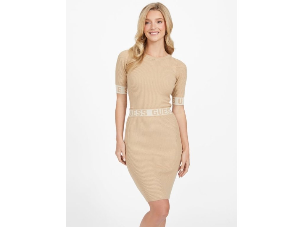 Dámský top Guess z úpletového materiálu. Ve 2 odstínech béžové barvy s logem na rukávech.