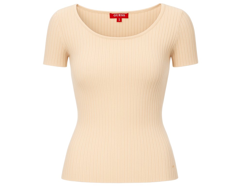 Dámský svetrový top Guess z velmi příjemného pružného materiálu. V dolním kraji zlatá kovové placička s vyrytým logem.