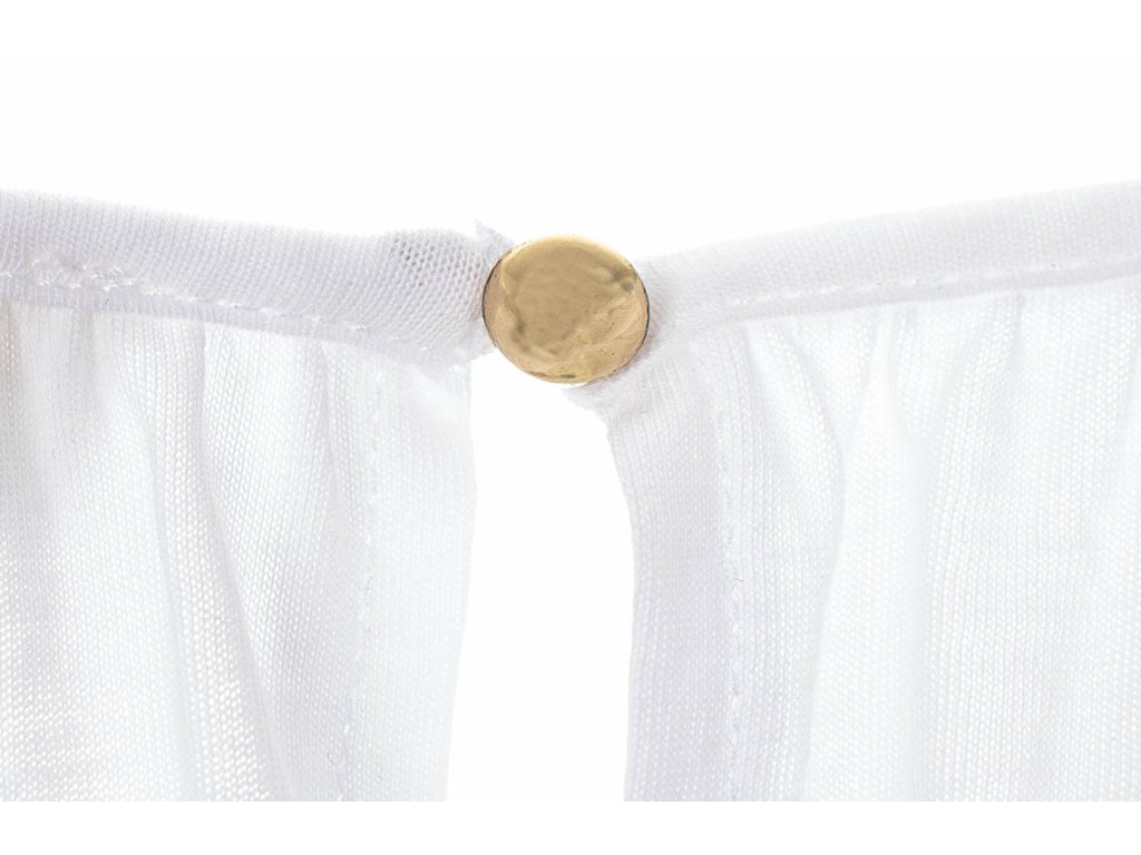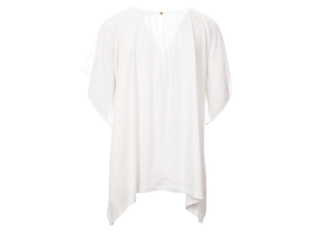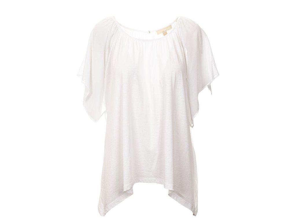 Krásný lehký top od známé značky Michael Kors. Jednoduchý top s průhlednými rameny, volný střih, spodní část po stranách lehce prodloužená, na zádech odepínatelný knoflík ve zlaté barvě.