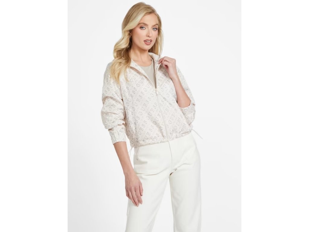 Guess dámská větrovka bunda Alexandria Windbreaker krémová s logem