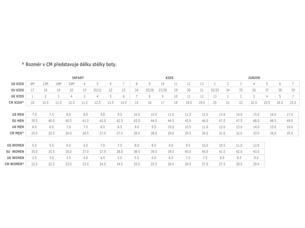 Znečištěné boty doporučujeme čistit pomocí mýdla a studené vody. Pro odstranění nadměrné špíny nebo skvrn použijte kartáč nebo měkkou látku. Boty nechte volně uschnout. Nikdy boty nesušte na přímém zdroji tepla ani v sušičce.