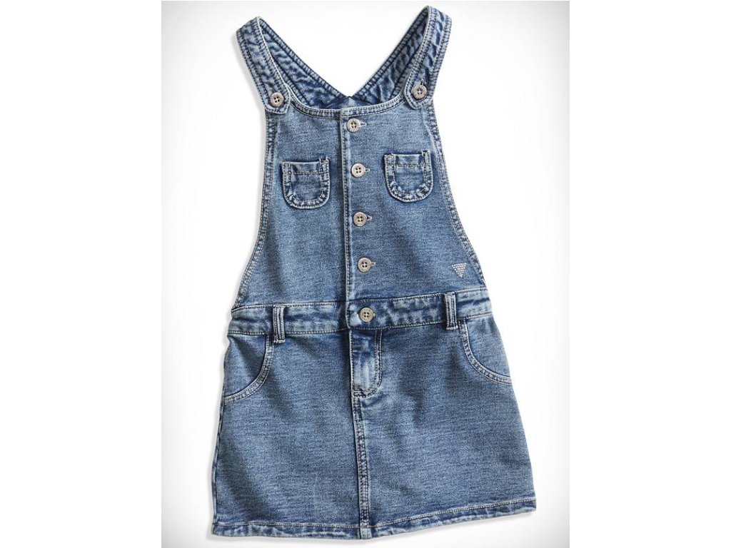 Pohodlné denim šaty GUESS kids Knit Denim Jumper pro malou princeznu. Ramenní popruhy a přední zapínání na knoflíky. Ideální kousek na léto.