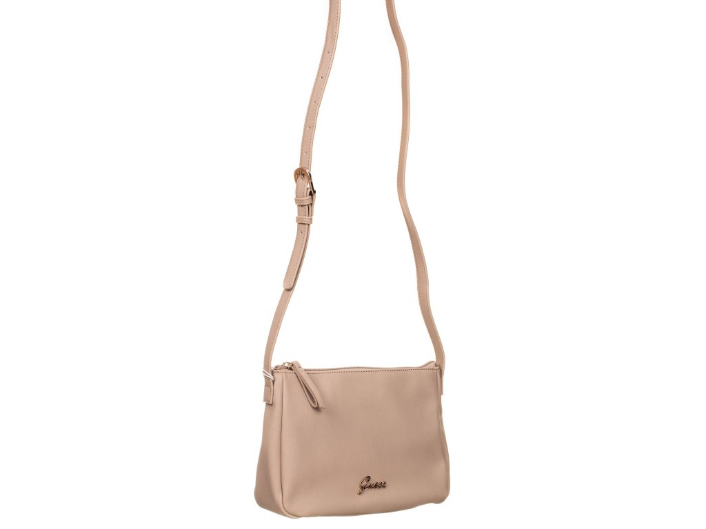 Dámská kabelka Guess v béžové barvě se zlatými kovovými detaily. Zdobená logem.