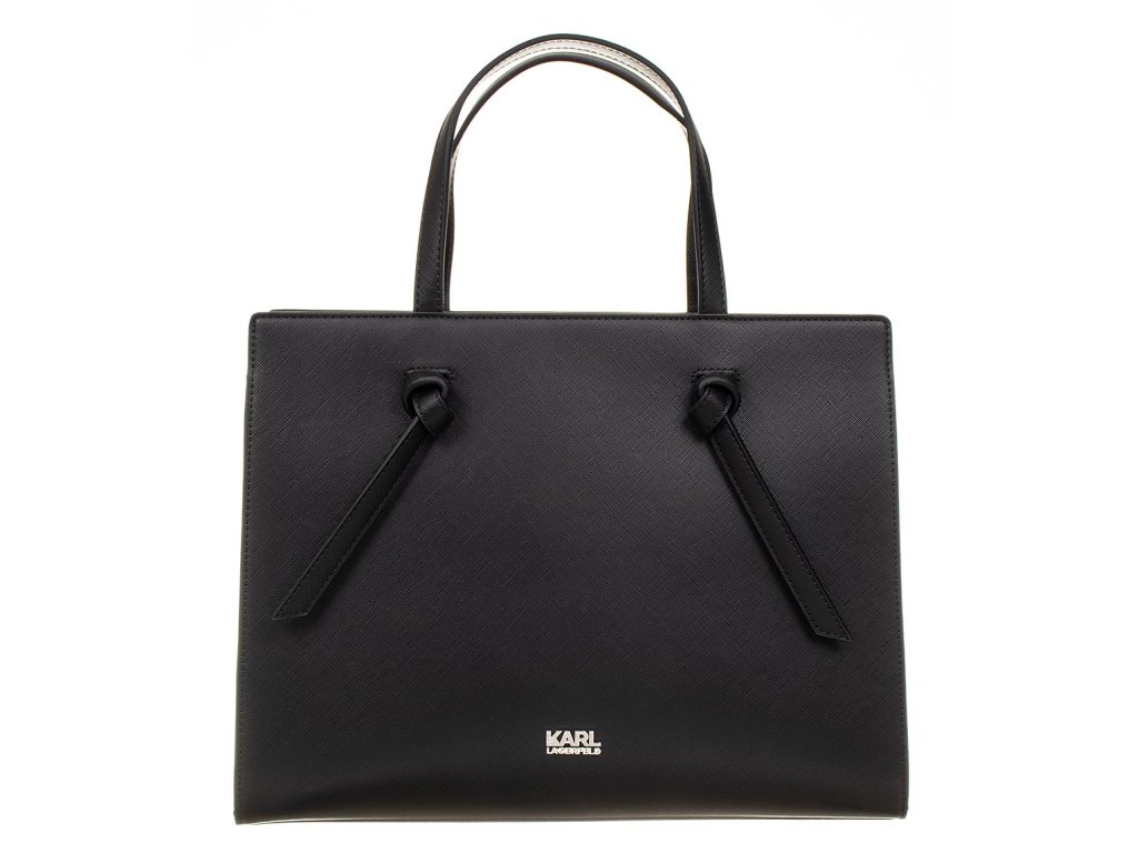 Dámská elegantní kabelka Karl Lagerfeld v černé barvě. Zdobená stříbrným kovovým logem. Součástí je dlouhý popruh, lze tedy kabelku nosit v ruce i přes rameno. Uvnitř 1 volná kapsa.
