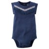 Dětské body Carter´s s třásněmi. Krátké rukávy a klasické zapínání na patentky. Přední díl zdobí geometrický vzor a třásně.
