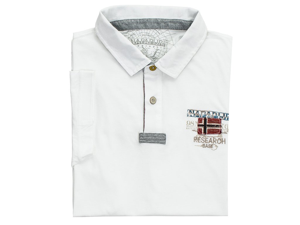 Pánské bavlněné polo tričko Napapijri . Na prsou zdobené aplikací vlajky Napapijri, límeček zespoda zaujme vyšíváním a potiskem. V dolních krajích na bocích jsou rozpaky.