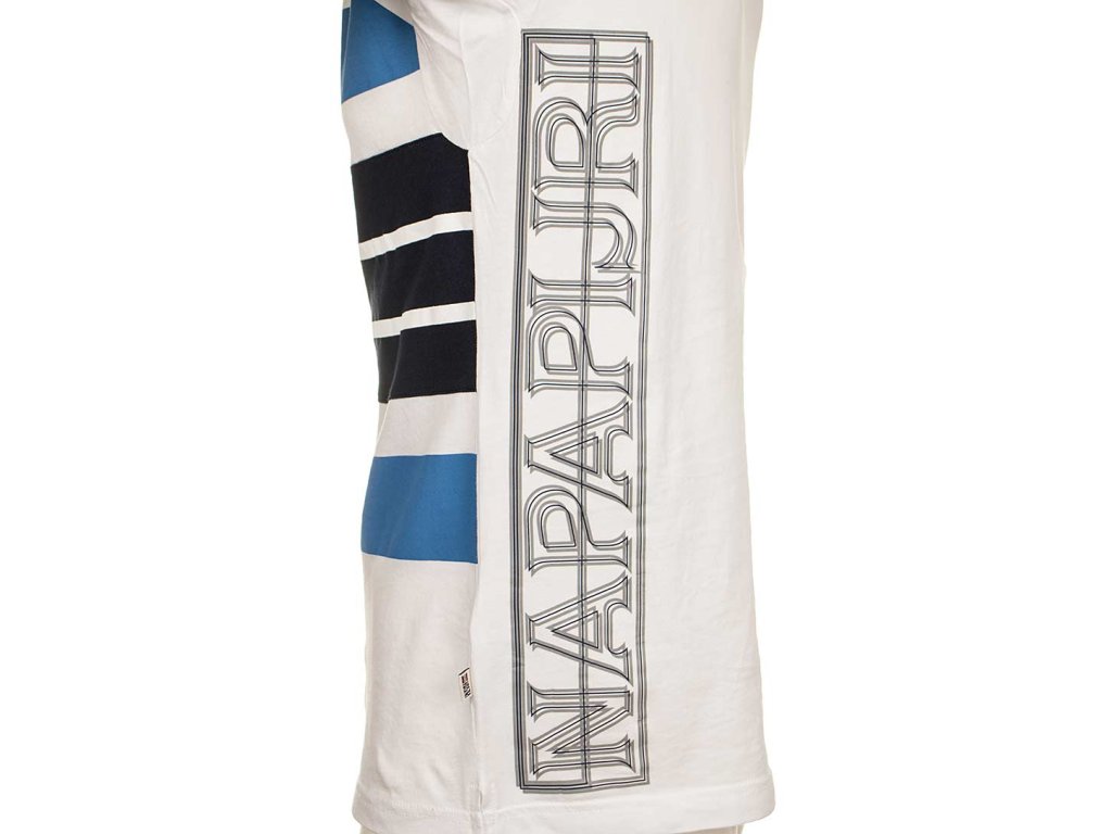 Napapijri pánské tričko bílé s černými modrými pruhy