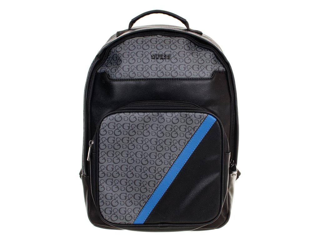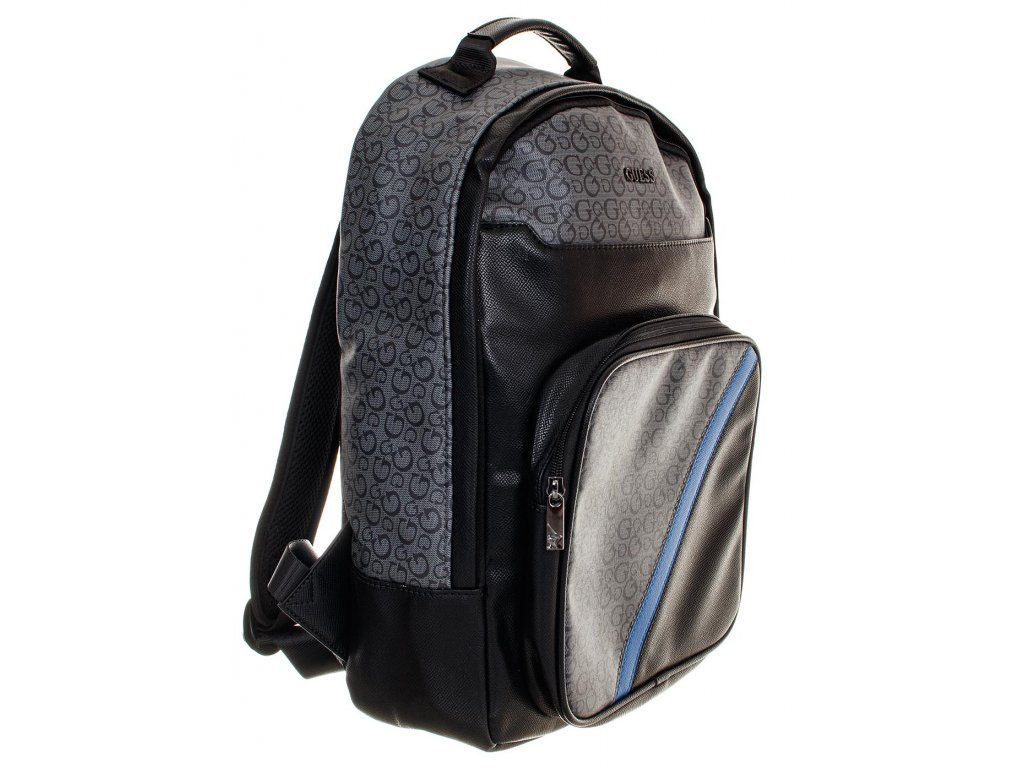 Guess pánský batoh šedo černý s monogramem a modrým pruhem