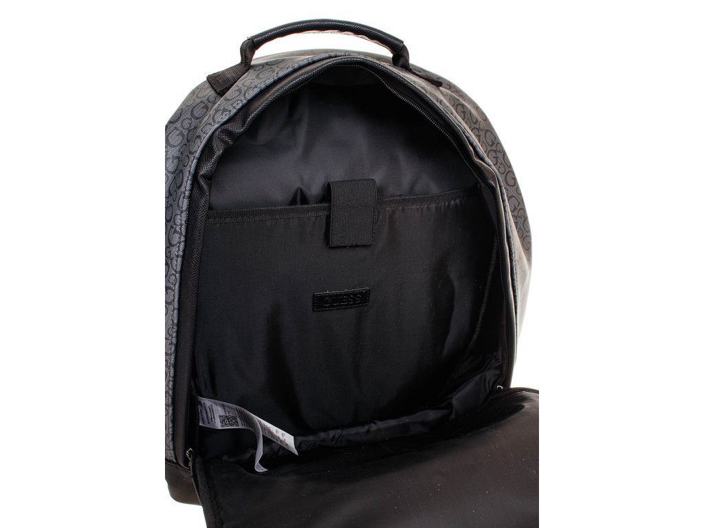 Pánský šedo černý Guess Damir Backpack batoh s monogramem a modrým pruhem
