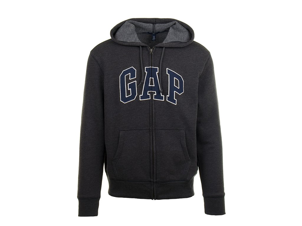 Pánská GAP mikina je basic kouskem této proslulé značky, kterou miluje snad každý. Tento kousek má zip, kapucu, kapsy. Temně šedá žíhané barva s modrou.