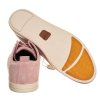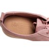 Pánské celokožené polobotky značky Clae v pastelově růžové barvě. Obuv z měkké nubukové kůže, vyjímatelná kožená stélka s EVA pěnou, tkaničky z voskované bavlněné šňůry na čtyři dírky, poutko na patě, gumová podrážka.