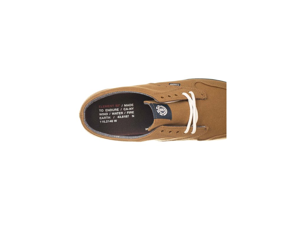 Pěkné plátěné boty značky Element. Jednoduché odolné boty v hnědé barvě, pogumovaný okraj bot pro větší výdrž, logo na jazyku bot.