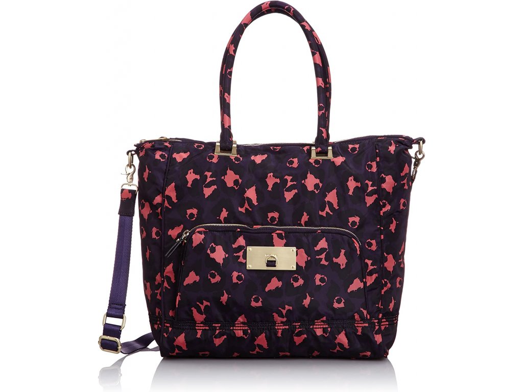 Dámská taška Diesel z textilu. V krásném barevném provedení, kombinace fialové, růžové a černé barvy. Se zlatými kovovými doplňky. Na vnější straně jedna kapsa na zip. Uvnitř jedna kapsa na zip a tři volné kapsy. Je prostorná, skladná, můžete nosit v ruce, na rameni nebo díky dlouhému nastavitelnému popruhu jako crossbody.