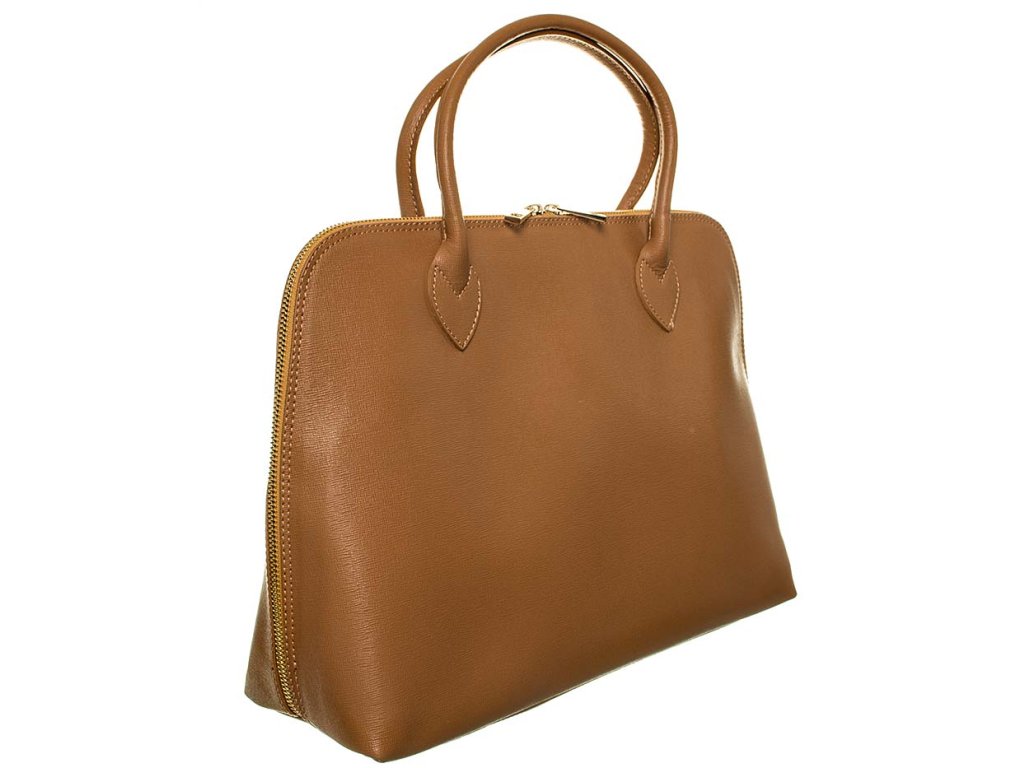 Dámská kabelka značky Ore10. Hnědé barvy se zlatými detaily a dvěma uchy. Zapínání je na zip. Uvnitř jedna menší kapsa na zip.